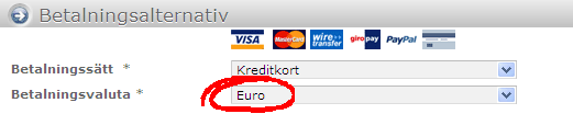 To get the better conversion rates of credit cards or PayPal you can change the billing currency on the order page to Euro.